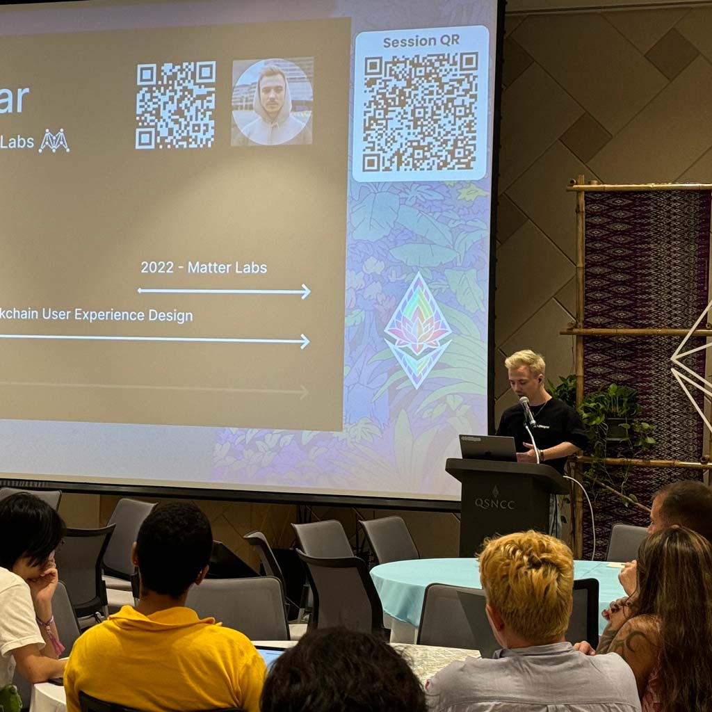 I also publicly speak about the onchain user experience, building dApps and mass adoption of blockchain at Devcon, DappCon, ETHDam, ETHWarsaw, ETHBucharest, and other global conferences. I conduct workshops for web3 founders, builders, and designers about user research and Customer Journey Mapping.